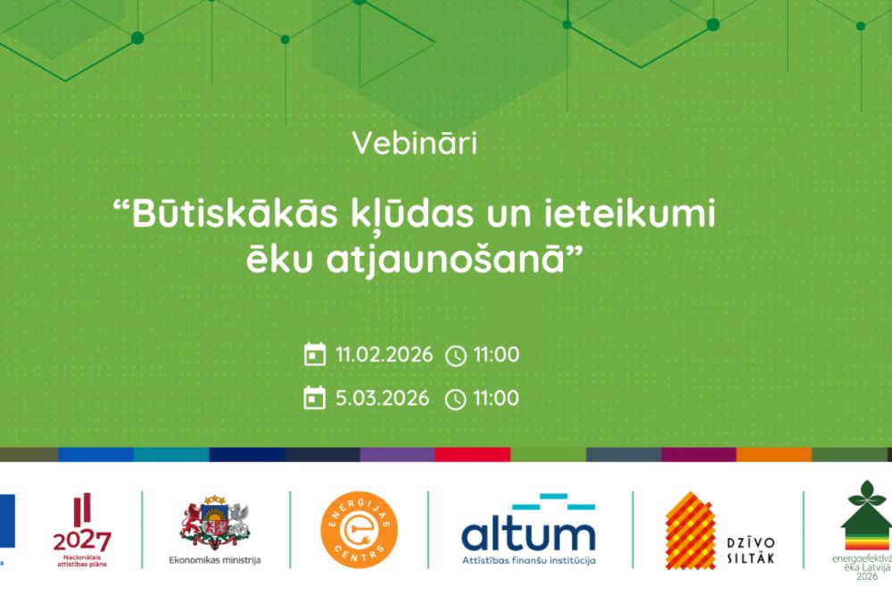 11 февраля и 5 марта этого года Министерство экономики (EM), Институт финансового развития Altum и Энергетический центр Elektrum приглашают принять участие в вебинарах «Наиболее существенные ошибки и рекомендации при обновлении зданий».