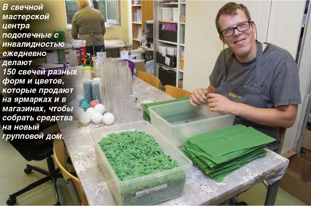 Эти свечи потом продают на ярмарках и в магазинах, чтобы таким образом собрать средства на новый групповой дом, в котором люди с тяжелой инвалидностью смогут жить достойно.