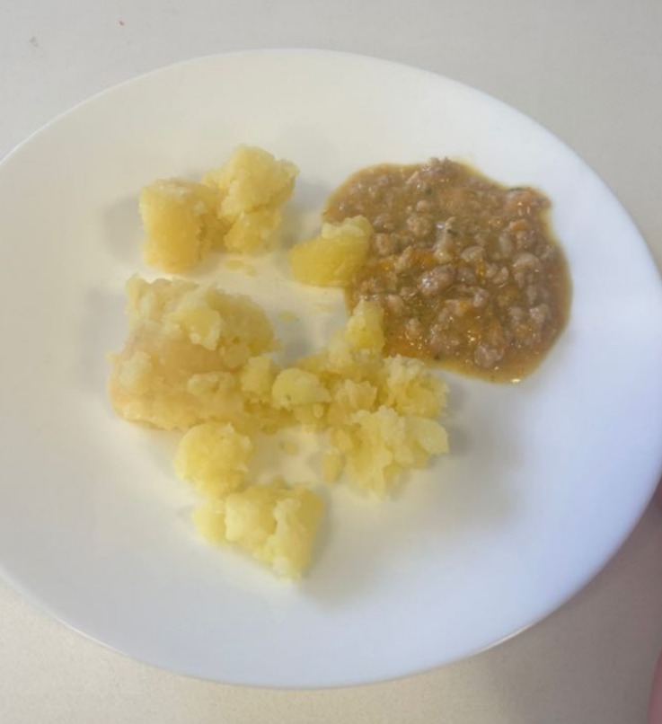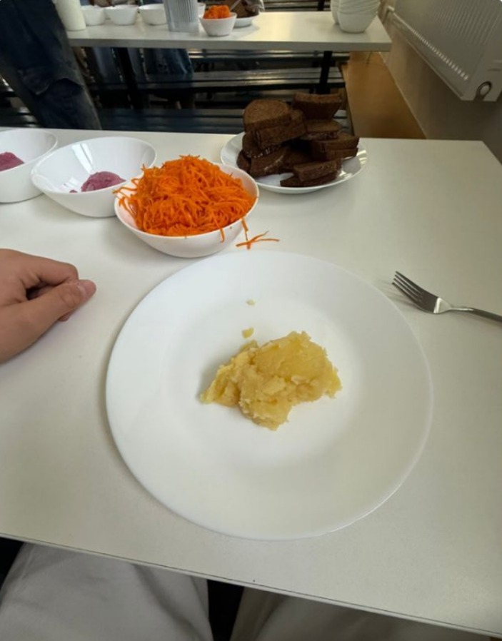 – Обед не может состоять только из картошки с морковкой. Такое блюдо просто не может попасть в официальное меню, ведь обед по содержанию белков, жиров и углеводов нормирован правилами Кабинета министров № 172. Детям на обед должен быть предложен белковый продукт – если не мясо, то рыба или сыр, например, для макарон. Кроме того, исходя из тех же норм, обед не может состоять из одного блюда. Нужно как минимум два, например, суп и основное блюдо или основное блюдо и десерт. Чаще всего предлагается три блюда. А на фото только одно блюдо, да еще и неполное.