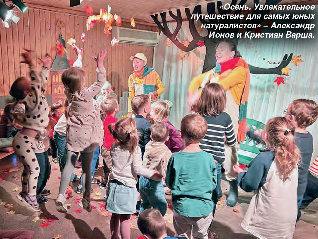 Наша с Кристиной постановка «Осень. Увлекательное путешествие для самых юных натуралистов» адресована самым маленьким, малышам, начиная с 1,5 лет. А для меня такие зрители – всегда вызов, всегда сюрприз. Ведь никогда точно не знаешь, что такому маленькому человеку нужно и что он сделает в следующий момент. Ведь спектакль-то интерактивный! Более предсказуемо поведение ребят 3–4 лет, они знают, что в театре надо сидеть и смотреть на сцену, а здесь у нас среди зрителей совсем крошки. Да, у нас есть определенная канва действия, но получается и некая импровизация. Дети очень активно откликаются, зачастую бывают и неожиданные сюрпризы для нас.