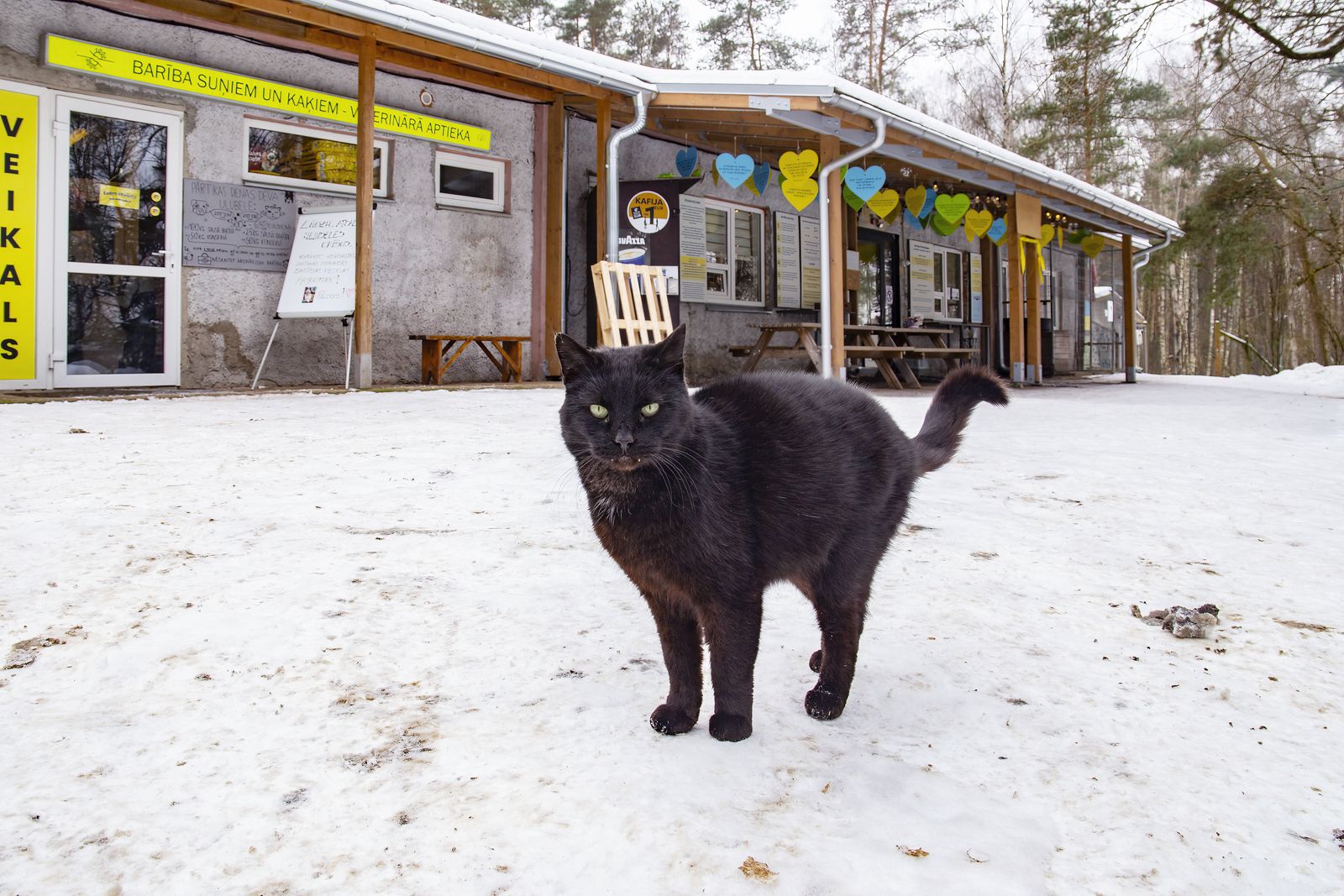 Кошки прячутся внутри, в отдельном отсеке. Представитель приюта для животных Ulubele Диана Элексе встречает нас с улыбкой и первым делом демонстрирует кошачье царство – проходим по их «палатам»: одни коты лежат, не шелохнувшись, другие на всякий случай прячутся в укрытия. А самые храбрые выходят общаться и демонстрируют, что они умеют.