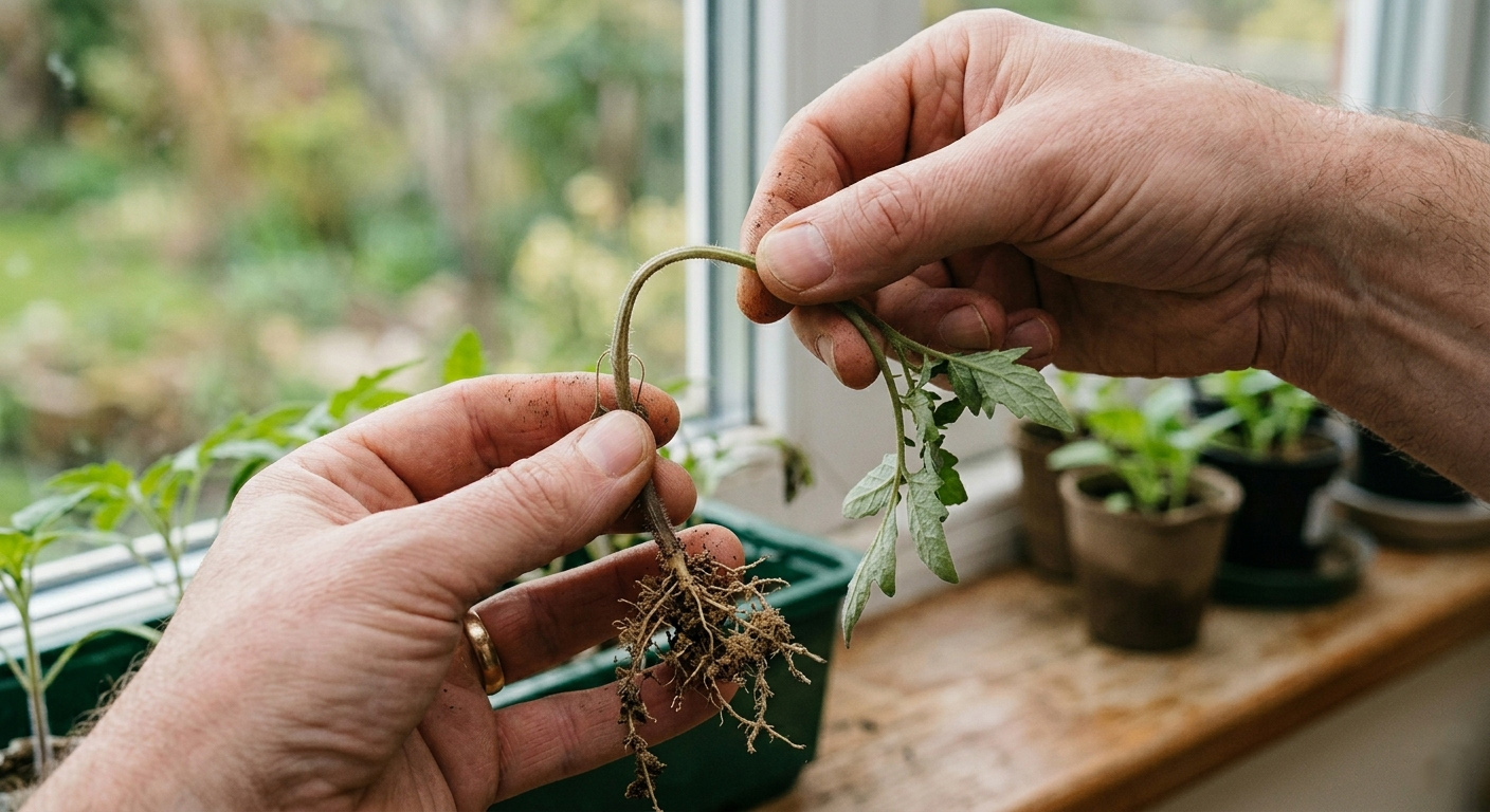 Светлана из Риги каждый год проводит огородные эксперименты, много идей черпает из Интернета. Она поделилась с нами одним удачным способом перевалки молодой рассады томатов в крупные емкости, который не дает саженцам вытянуться.